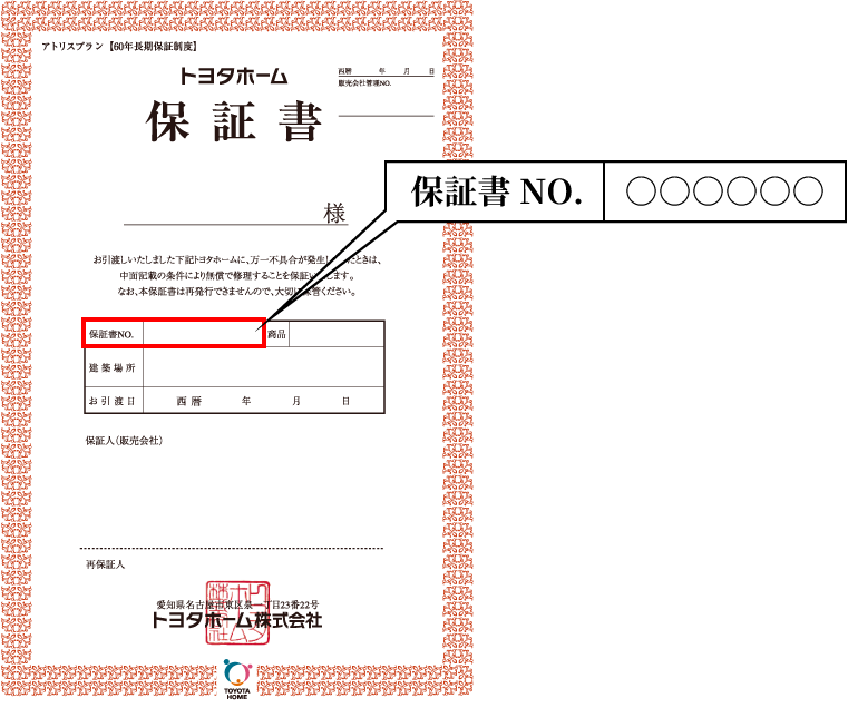お引き渡し時に提出させていただいています保証書をご確認ください。